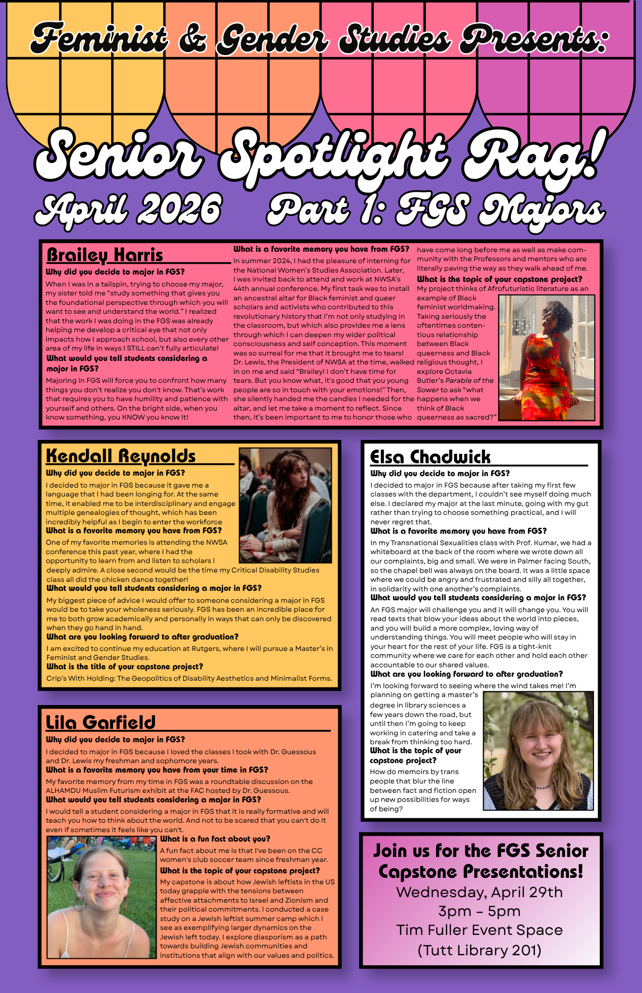 The following editions were edited by Auna McConnaughey (Feminist and Gender Studies '25) with support from junior editor Hero Clinemills ('28).